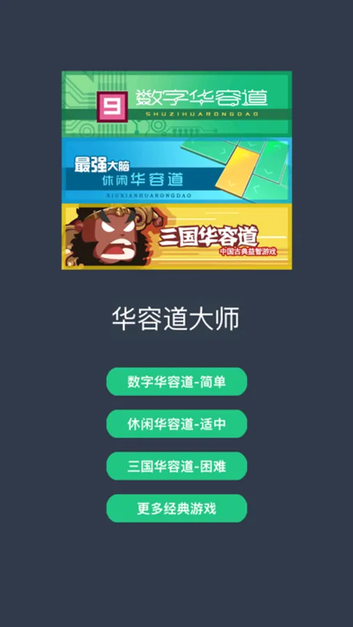 三国华容道:这是中国古老的游戏了,多种不能规格的元素,相互交错移动,让曹操最终可以从最下面的中间逃脱。源自三国的捉放曹的故事。收集了几千关经典的关卡,并从易到难排序,让我们可以一点点进步,一点点开拓思维。越到后面越是难上加难,不过不用担心帮助里给出了具体的步骤,可以在你即将崩溃的时候助你突破,进入更高的层次。