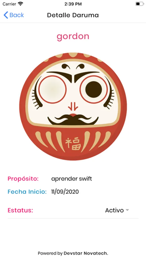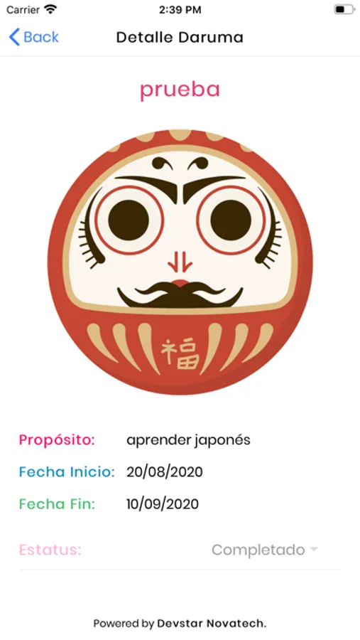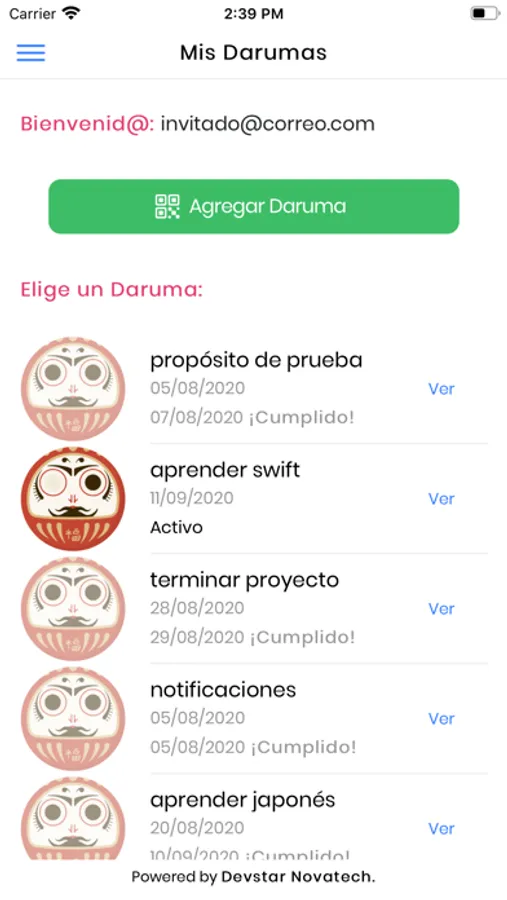 El Daruma Virtual de Koinoboiri Artesanias te ofrece las mismas características, hace recordatorios por medio de notificaciones y ¡puedes tener los que quieras! Tienes que regístrate en la App y para activarlo lee el código QR con la cámara del dispositivo, si el código es válido, escribes tu propósito y listo. ¡A cumplir tus metas!