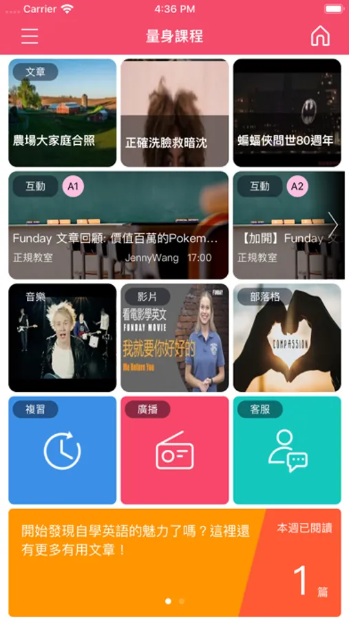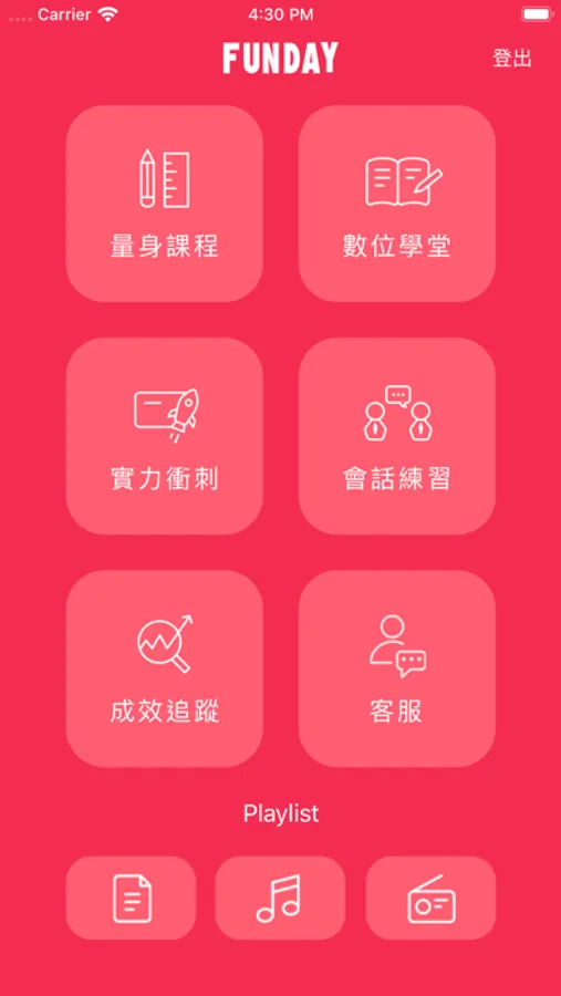 台灣最大英語數位資料庫,最跟上時事/職場/生活的語言學習APP — FUNDAY!聽、說、讀、寫不知道怎麼加強嗎?FUNDAY 幫您安排學習特質檢測,針對每個人量身訂製英語學習方針!