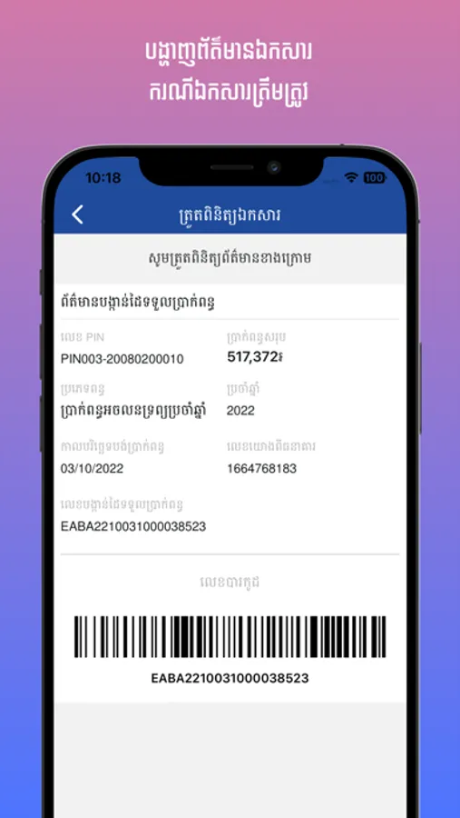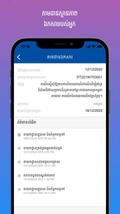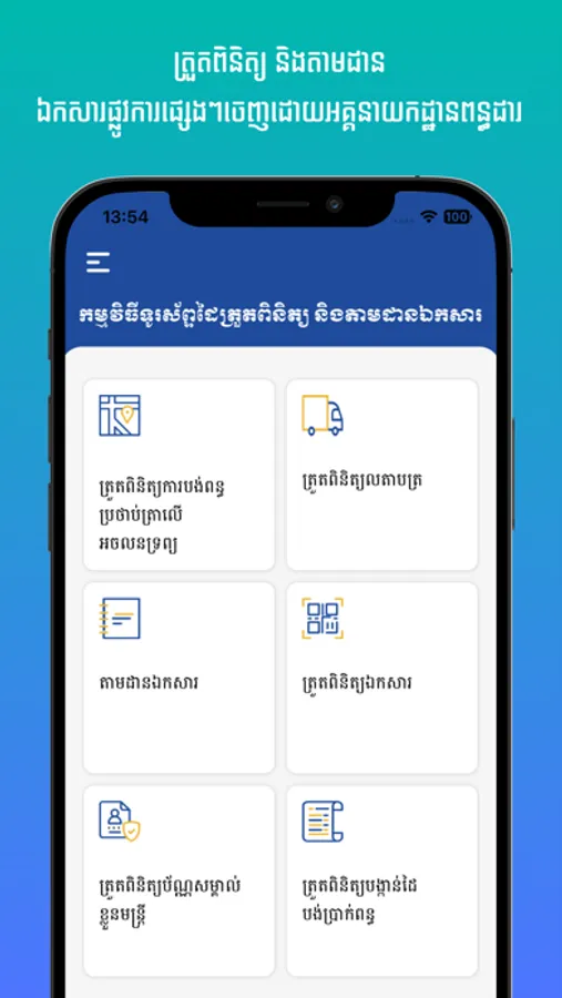GDT Check & Track App is an app which user have ability to verify any letters issue by Cambodia Taxation, and also can track document status by scanning QR-Code.