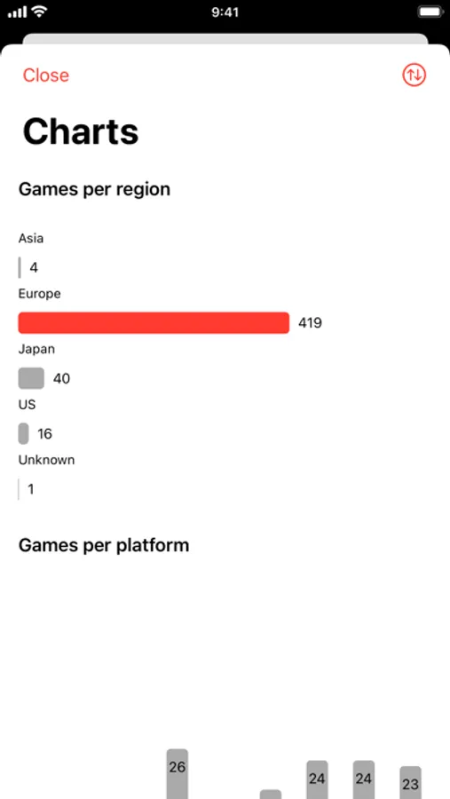 What would be a collections without some charts, to have a global view of it. You can see how many games you have per region, how many games you bought per year, or how many games from a specific year you own.