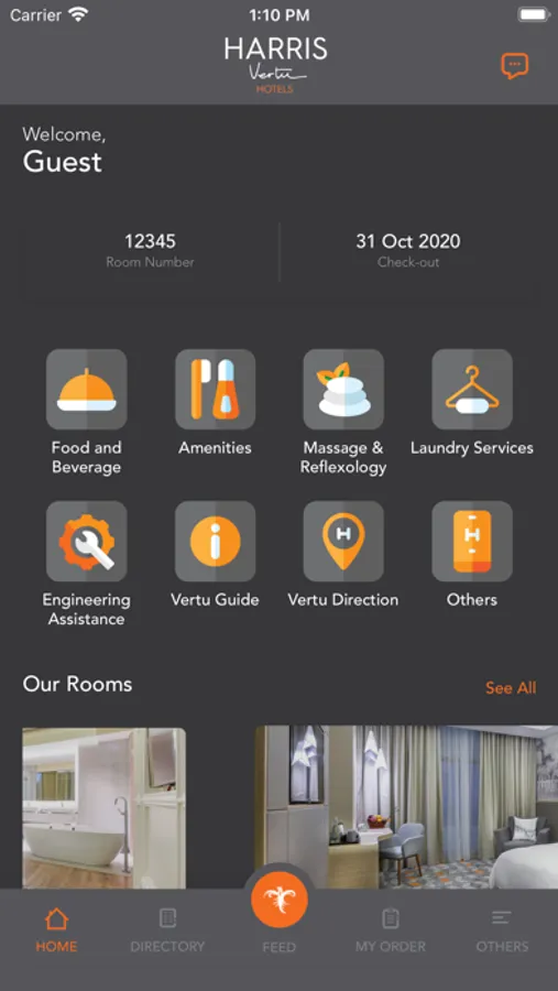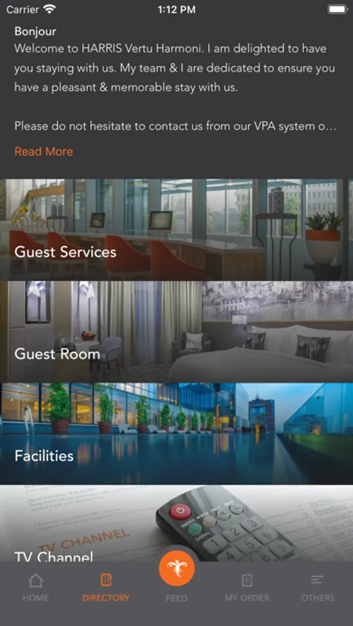 HARRIS Vertu Personal Assistant allows guests to be connected more seamlessly with hotel's services. Using the app, guests can access hotel information, interact with the hotel for a range of in-house services throughout their stay and see notable places around them. Guests will also receive notifications on hotel's promotions, latest updates, order status and many more.