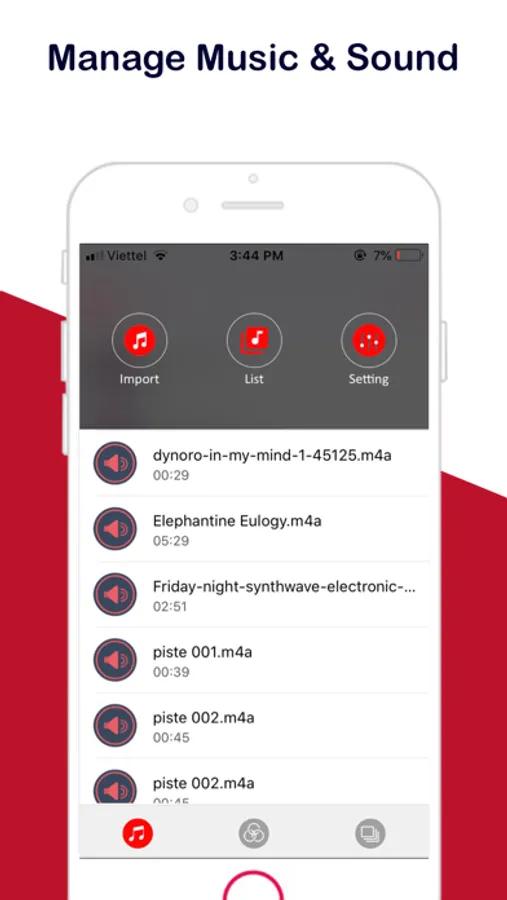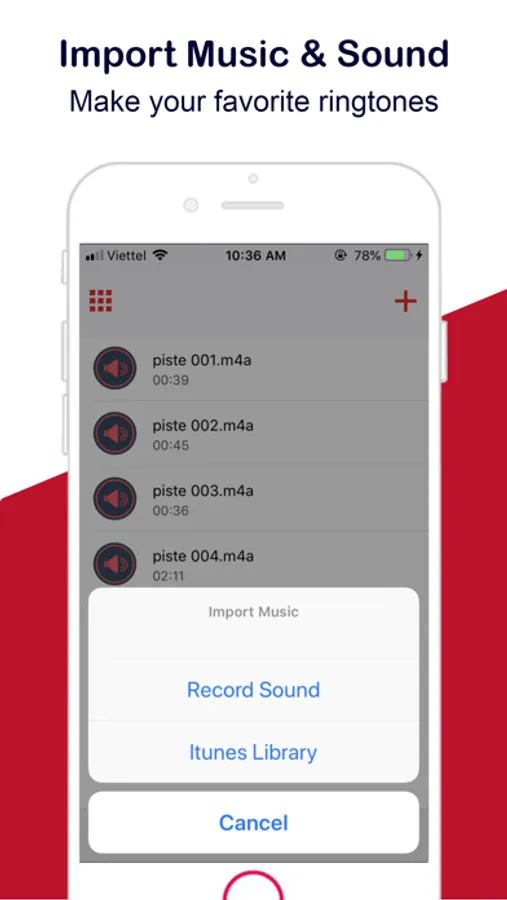 You can import music/audio files from iTunes, record sound, Cloud storage, custom category music and create ringtones.