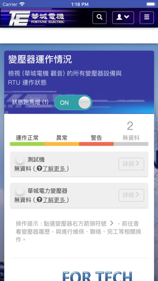 具有遠端監測平台、歷史數據曲線、歷史異常查看三項功能,可隨時掌握變壓器運作狀況與過去監測記錄的查看/下載,讓使用者可直接從APP上得知變壓器當前與過去之情形。