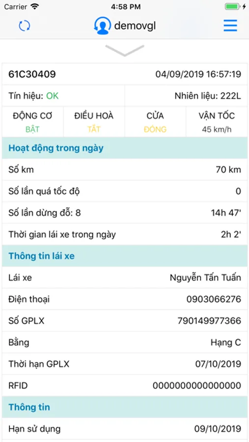 - Xem báo cáo số km di chuyển, thời gian mở động cơ, số lần quá tốc độ