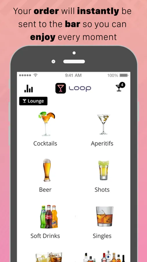 Don't waste your precious time queuing up and still not getting your turn. Instead, enjoy every moment and order your drinks easily with LOOP. Whether it's catching some fresh air, catching up with friends or being in the restroom. Your order will instantly be sent to the bar and you will receive a notification as soon as you can pick it up.