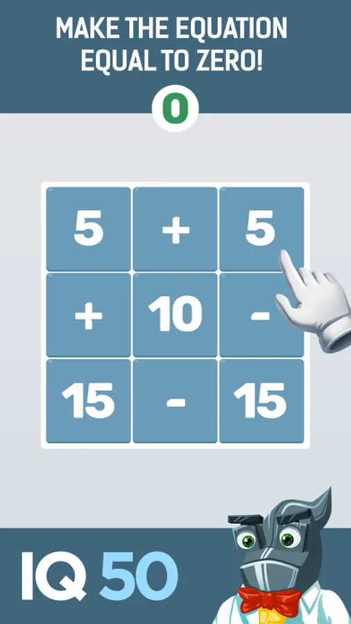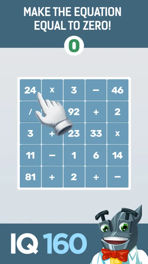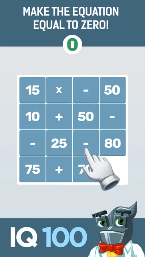 In this math game, you need to determine the order of numbers and signs in such a way so that the math equation yields zero. This is easy to do at the beginning, but the higher the level, the more numbers there are on the playing field and the more mathematical operations you need to perform.