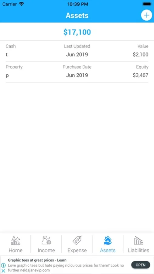 adding income, expenses, assets and liabilities