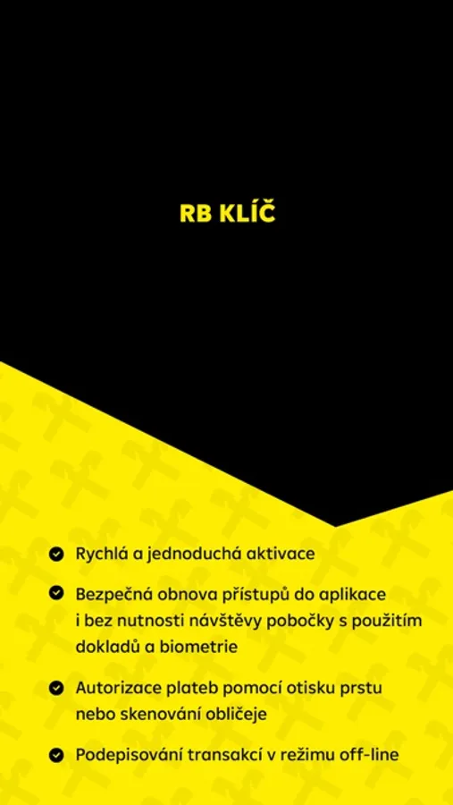 RB klíč je aplikace od Raiffeisenbank, která vám umožňuje bezpečné a pohodlné přihlášení do internetového bankovnictví nebo Vám usnadní potvrzení pokynů, které chcete provést v internetovém bankovnictví. Dále vám RB klíč umožňuje bez návštěvy pobočky provést obnovu přístupů do aplikací Raiffeisenbank pomocí dokladů totožnosti a biometrie.