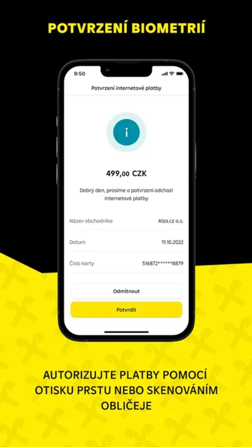 Aktivace aplikace je podmíněna bankou nastavených oprávnění v internetovém bankovnictví.