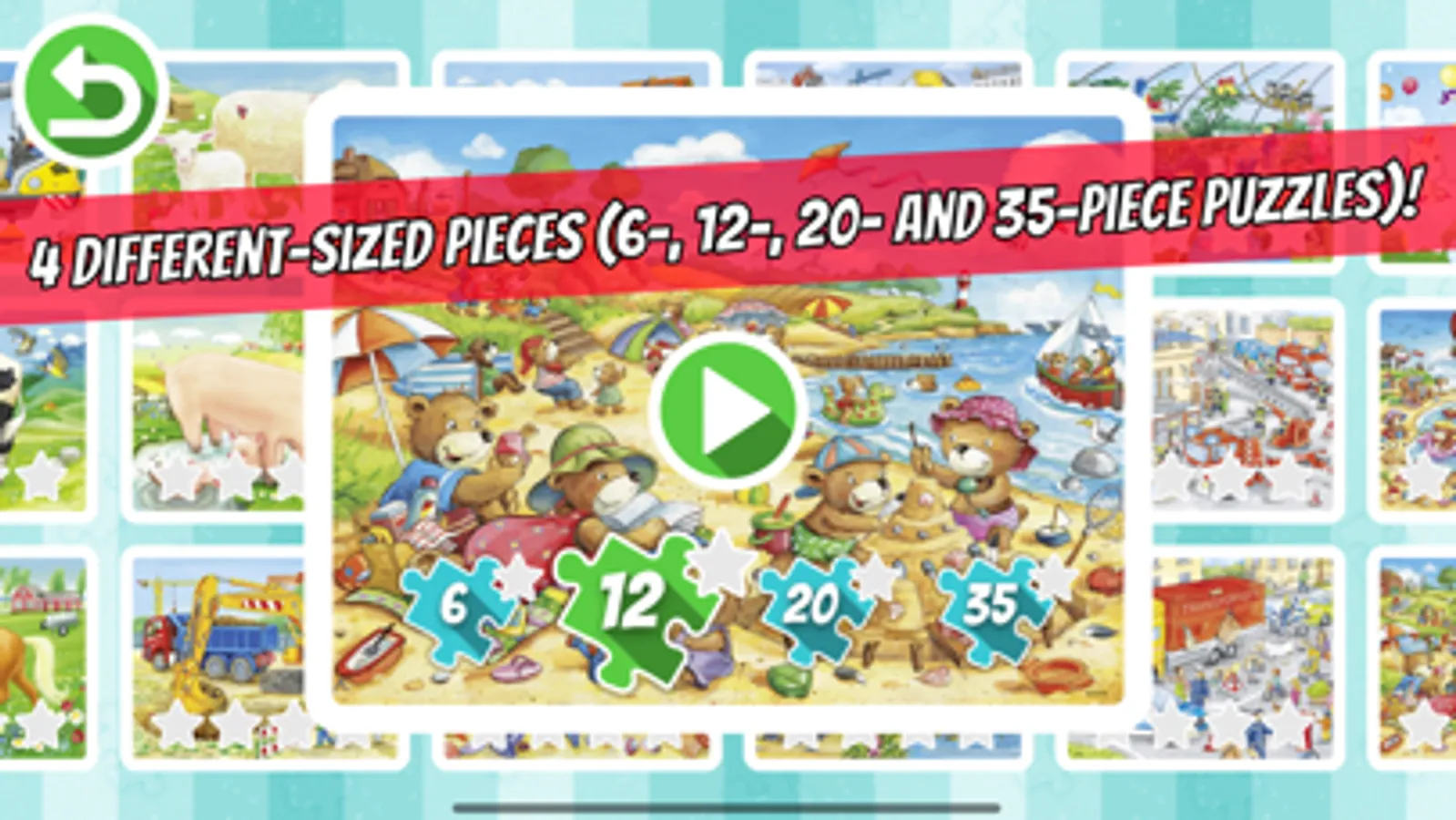 With the "Ravensburger Puzzle Junior" app, young puzzle fans can enjoy their first puzzle experience. The abilities of preschool children have been carefully taken into account: the puzzle pieces cannot be accidentally rotated and the table is centred, allowing the children to fully concentrate on completing the puzzle. Several children can also complete a puzzle at the same time.