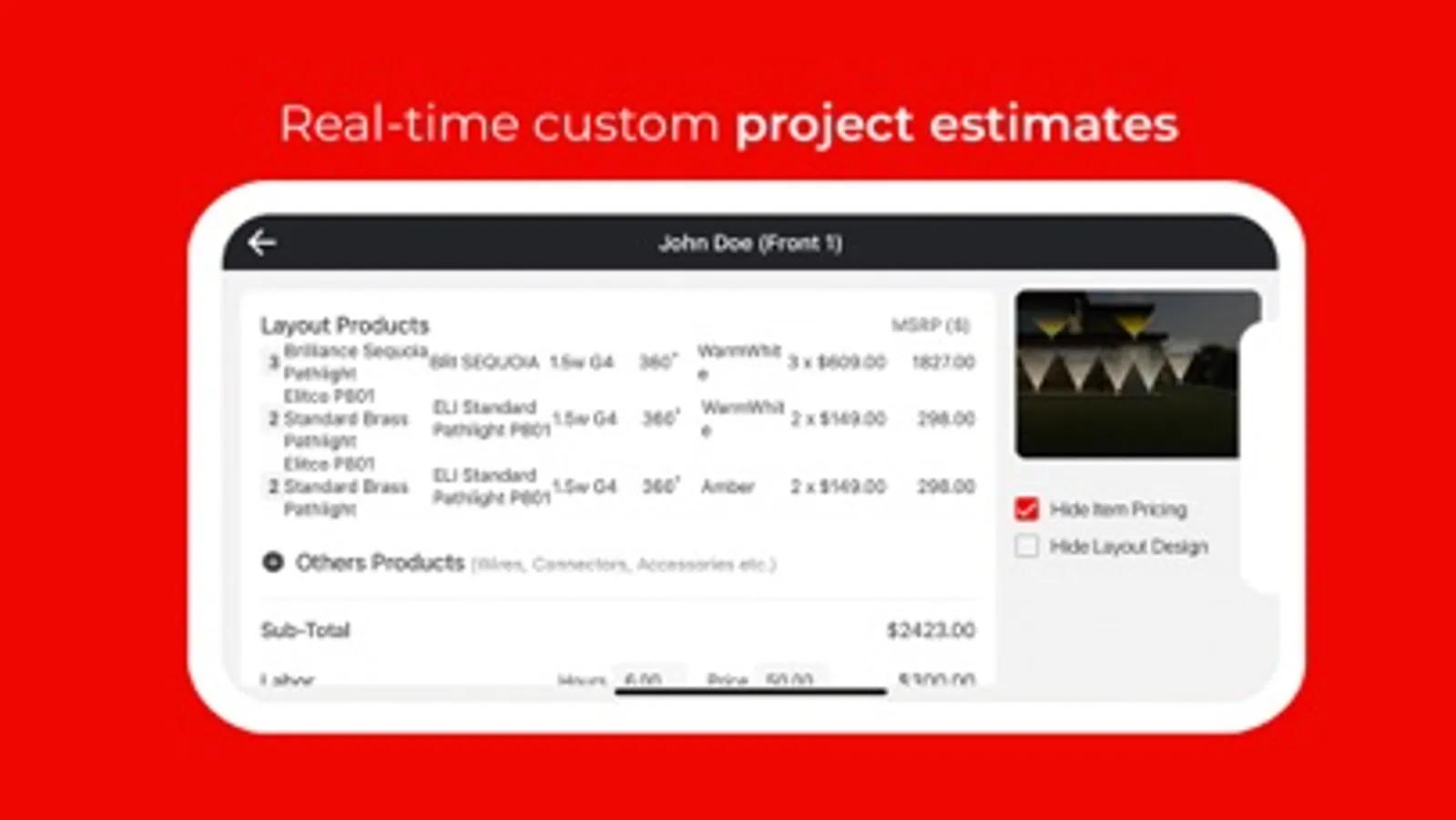 Lighting BOSS 2.0 Design & Sales App is for the Outdoor Lighting & Audio professional. Create designs, proposals, work orders and even purchase orders in minutes, not hours, all while onsite. You can utilize this technology to increase your profits, efficiency and value. This FREE version comes with preselected products which are available for purchase at Lighting BOSS.