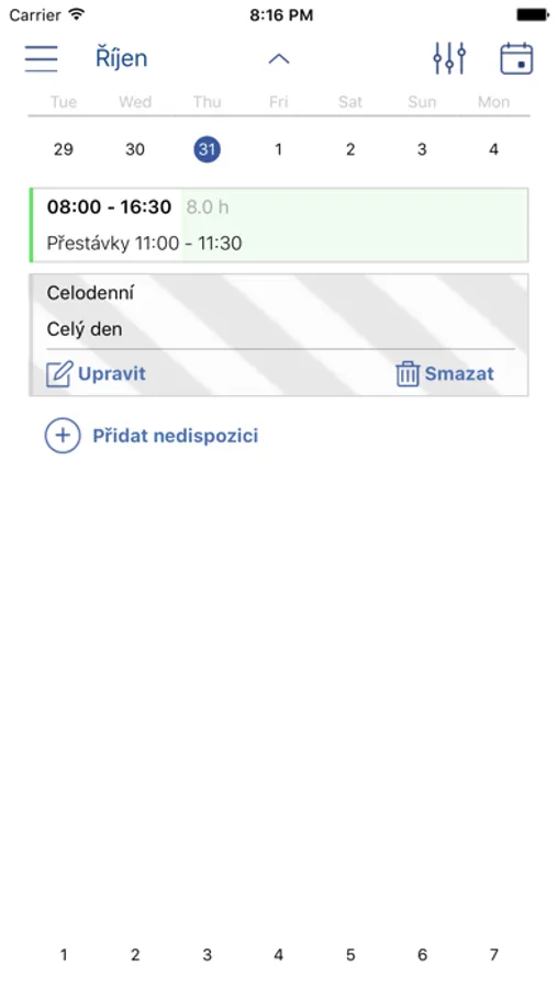Aplikace umožňuje zobrazení vlastní docházky, případně i docházky celých organizačních útvarů. Dále lze v aplikaci spravovat nedispozice.