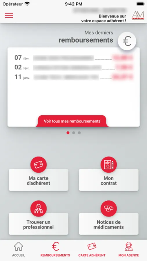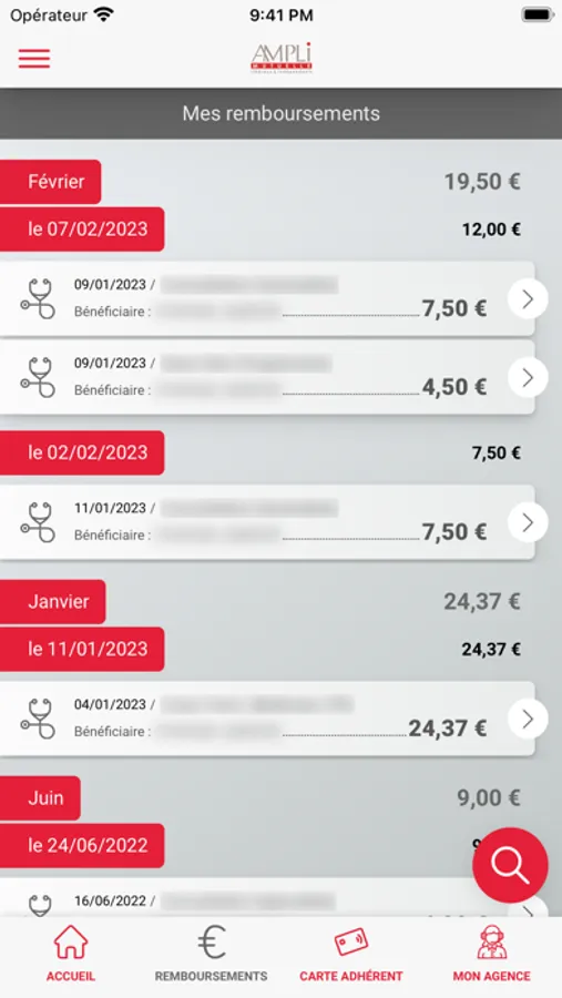 - Le suivi de vos remboursements avec la possibilité de télécharger vos décomptes et de réaliser des recherches selon différents critères (date de soins, bénéficiaire, type d’actes remboursés …)