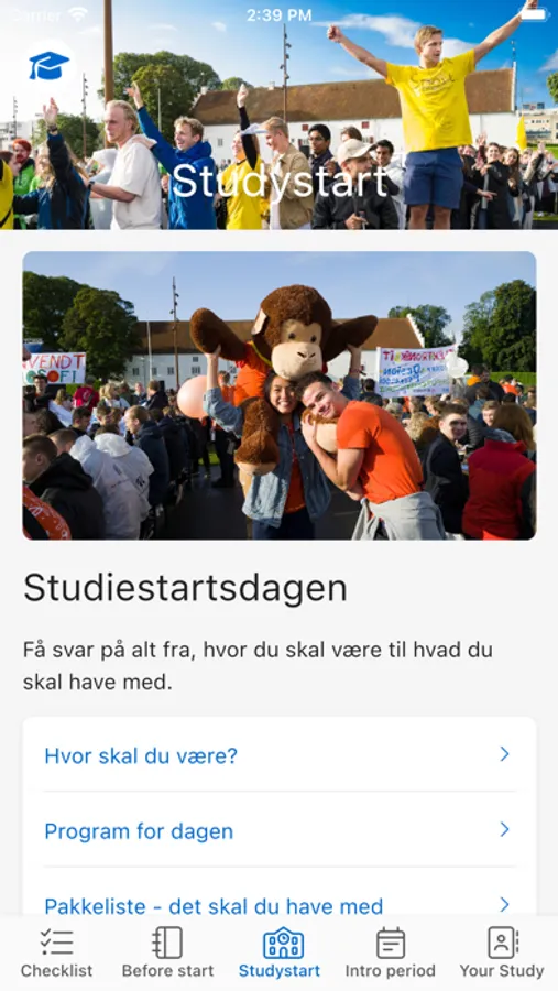 AAU Start is for you who want to start a bachelor's degree at Aalborg University. The app exists to make your study start easier and therefore gathers relevant information about the study start period - you get, among other things, a checklist to get you ready as well as a program for the day you start your studies and the following study start period.