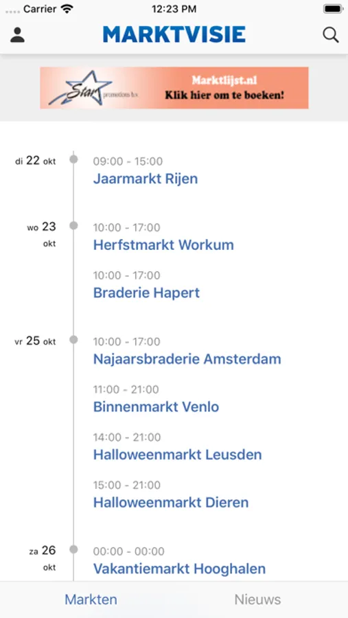 - Vind iedere markt en braderie, of die nu wekelijks of slechts één keer per jaar plaatsvindt