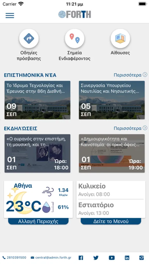 Forth app brings all needed information about the institute on the users device. Get informed about events, general institute info but also submit your problem report, or book a conference room with just some taps on your screen.