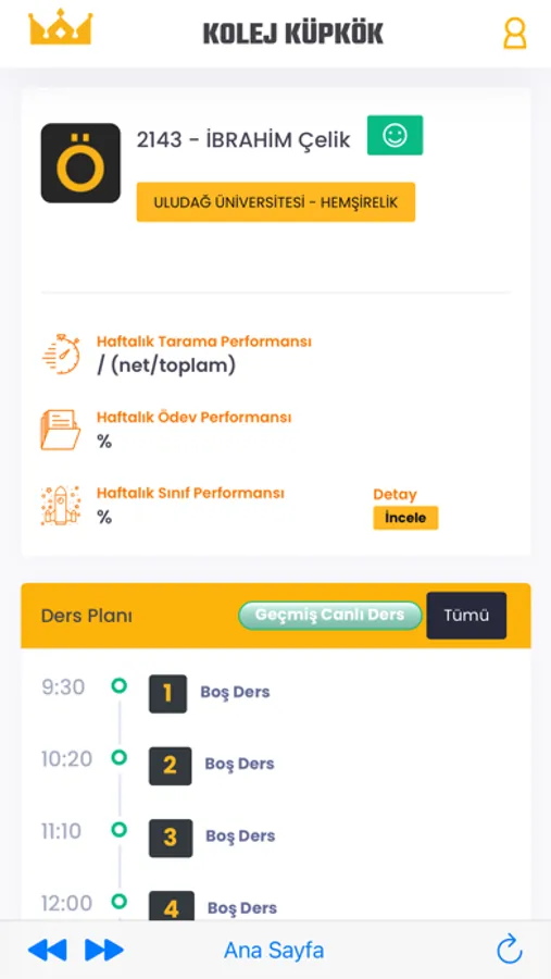 Online yoklama sistemi sayesinde velilere anında bildirim gönderilir.