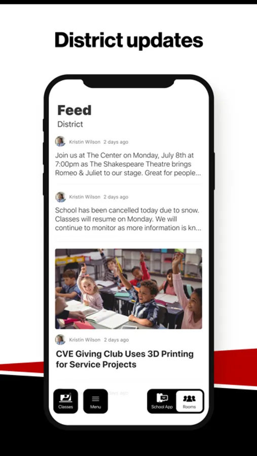 In the Live Feed is where you’ll find updates from the administration about what’s going on in the district right now. Whether that’s celebrating a student’s success, or reminding you about an upcoming deadline.