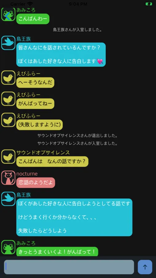 登録は不要で、好きなアイコンと好きなハンドルネームを決めるだけで気楽に参加できます。