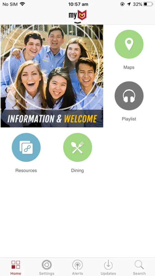 Features a calendar, notifications, campus map, resources list, and other useful links and informational pages. .