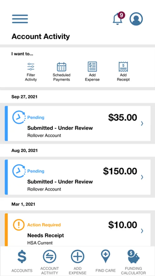 • Benefit Health Account balances and details