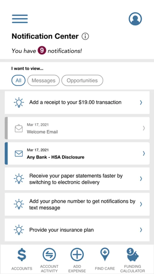 • Ability to fund HSA account from checking/savings account