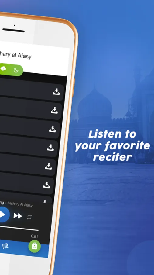 Audio player Muslimin, listen to the Quran wherever you are (Offline Mode, Sleep Mode)