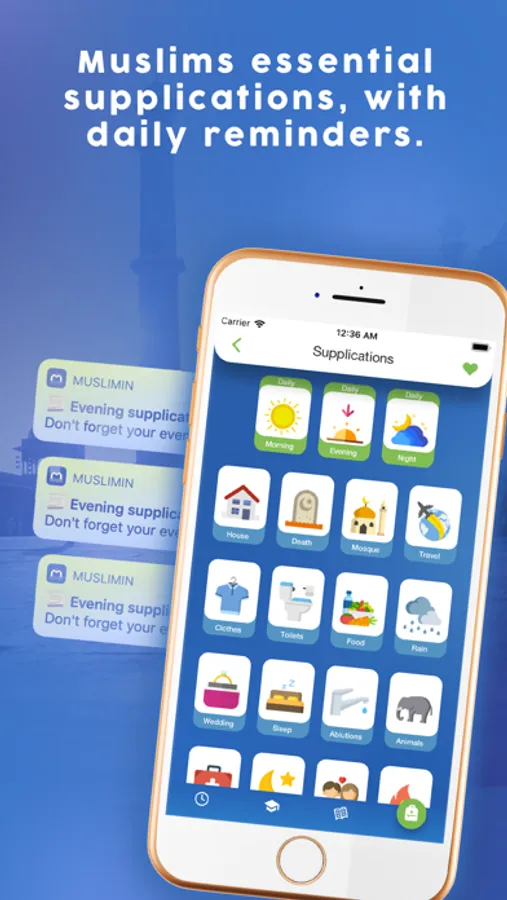 And a selection of supplications from the Holy Qur'an and the sunnah, with daily notifications.
