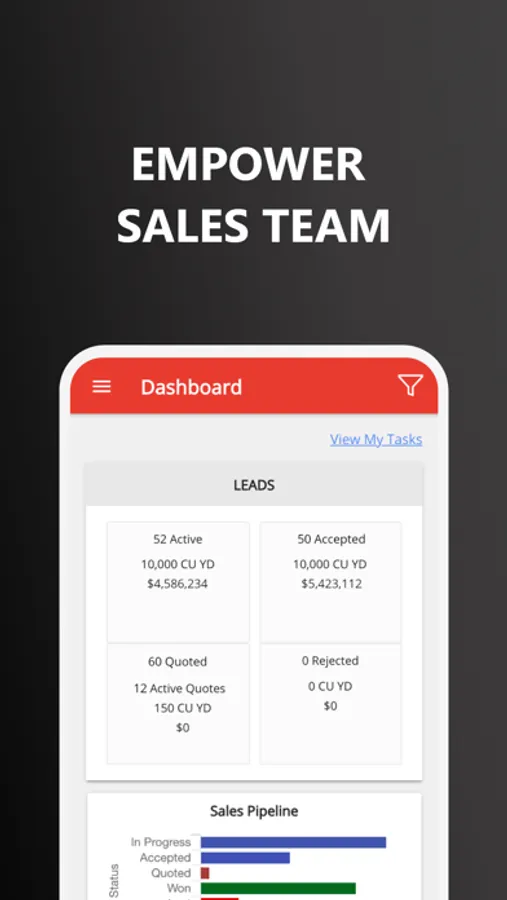 ProQuo empowers your sales team with an app to create quotes quickly. Quotes are automatically routed internally for approvals based on the rules you set and once approved are electronically sent to your customers. ProQuo is able to sync jobs directly to your dispatching system. Our advanced analytics provides your sales team with insights to quote more effectively and drive higher profit margins.