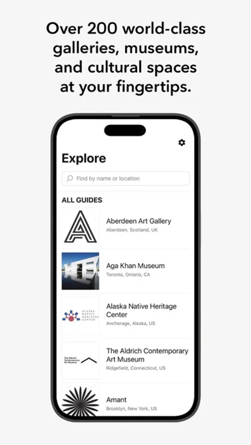 Use the app to discover museums and cultural spaces in 25+ cities worldwide including — Brooklyn Museum, Central Park Conservancy, The DuSable Black History Museum, The Frick Collection, Georgia O'Keeffe Museum, Guggenheim Museum, Hammer Museum, ICA/Boston, Jewish Museum, The Met, MoMA, New York Botanical Garden, The New York Public Library, Noguchi Museum, The Phillips Collection, Serpentine, Sir John Soane’s Museum, Storm King Art Center, Tate, Yorkshire Sculpture Park and more.