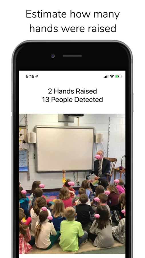This iOS app provides an interface for taking photos of people raising their hands, uploading them to a server running an HRNet pose estimation network, and visualizing the predicted head and hand locations. Uploaded images are also saved to help create a more representative dataset for further training. It works surprisingly well given no task-specific training, but is very much a proof of concept and should not be relied upon where accuracy is important.
