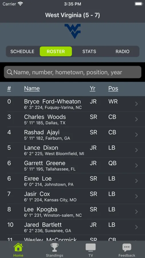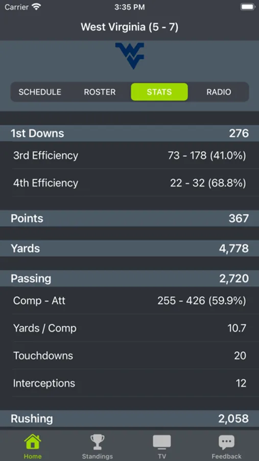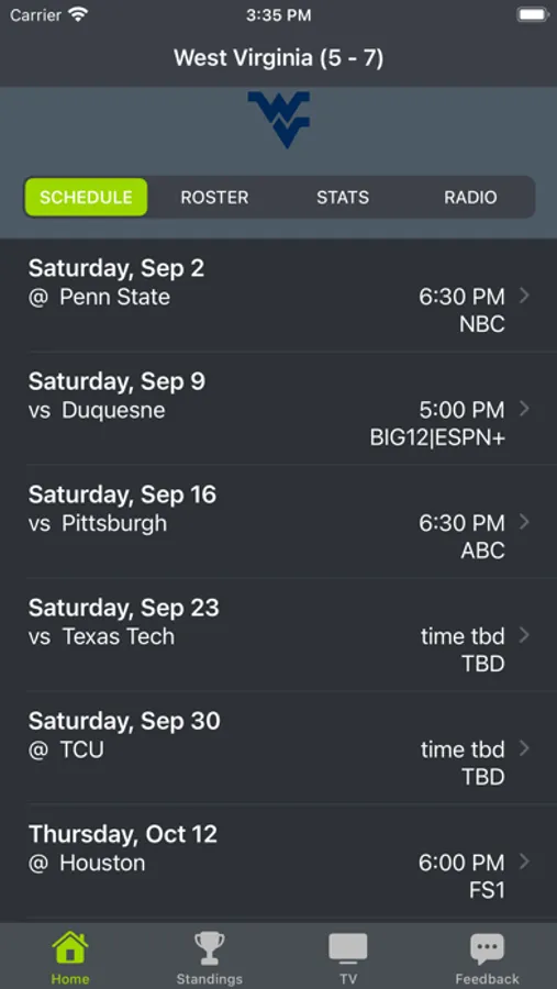 West Virginia Football provides scores, links to live radio, schedules, tv channels, player profiles, and game matchups in one location.