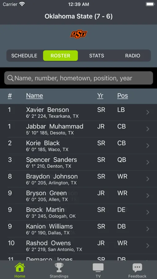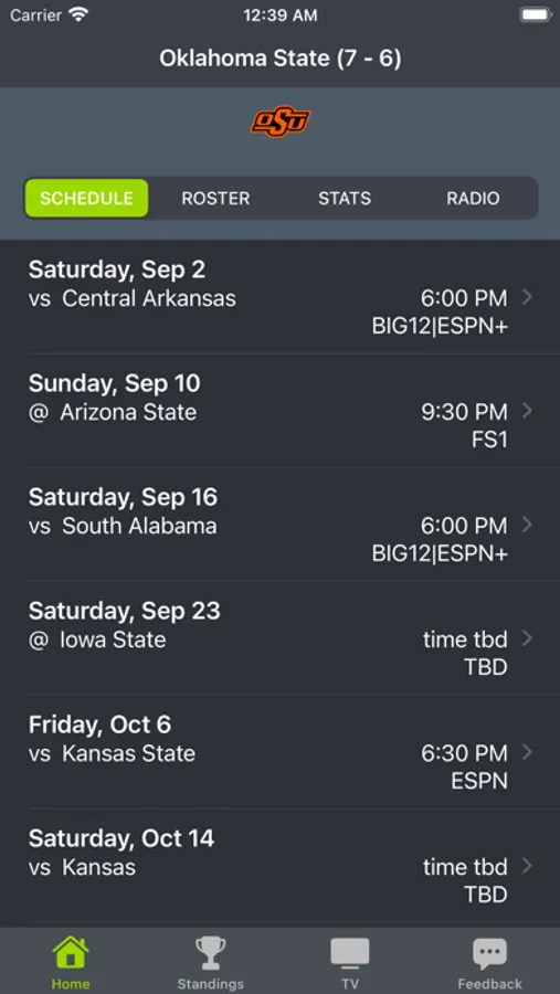 Oklahoma State Football provides scores, links to live radio, schedules, tv channels, player profiles, and game matchups in one location.