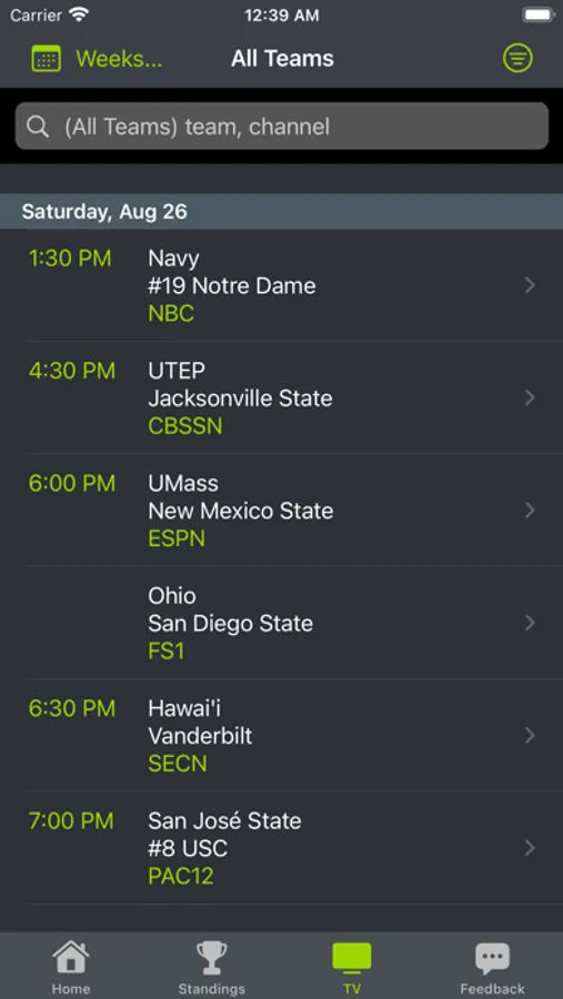 "...love the TV schedule. No longer have to look at my cable guide to look at my game schedule during College Game-day."
