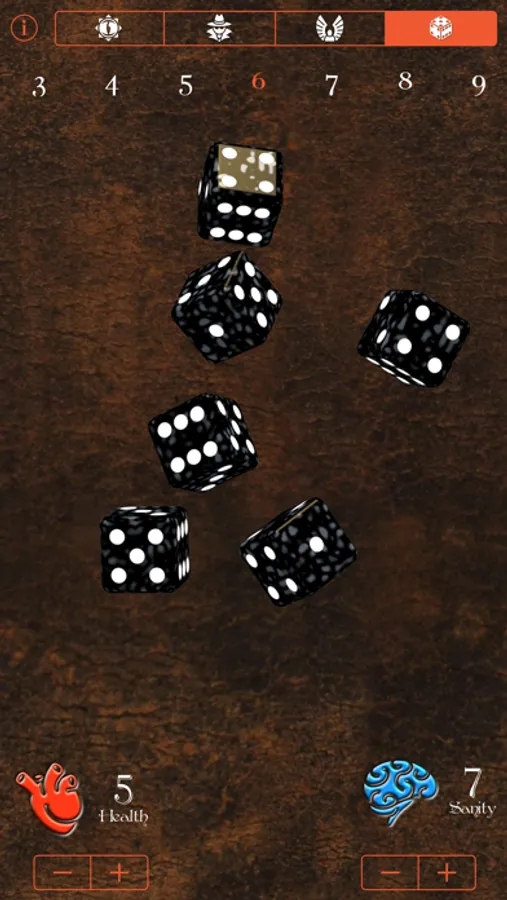 Compatible with you favorite Lovecraftian board games that uses six sided dice checks.