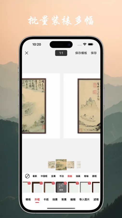 不但可以单张图片编辑,也可以批量导入图片进行装裱编辑,满足您快速出图的高效。