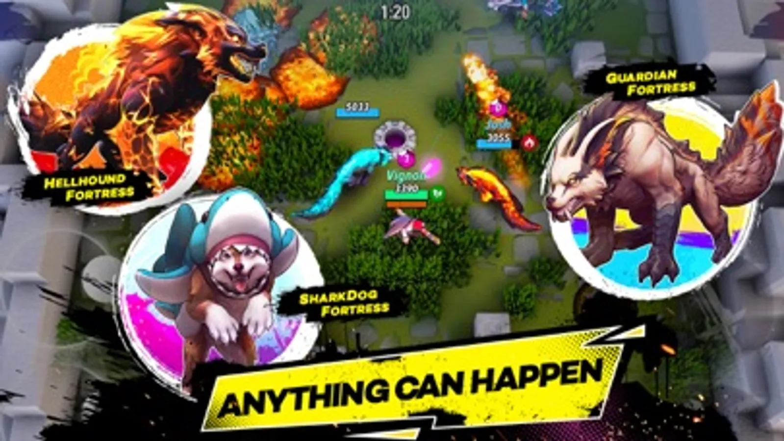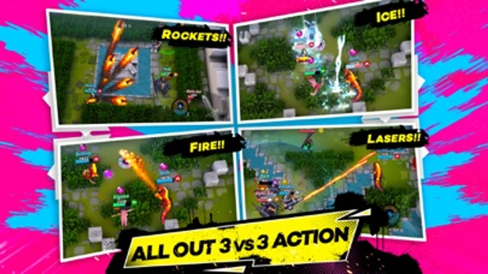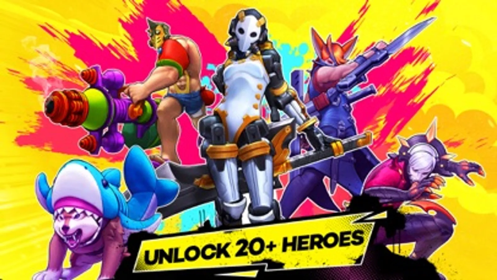 Embrace your inner coolness as a Terminator Robot (or Shark Dog) and enjoy over-the-top 3v3 combat in humorous yet wildly epic battle action. Duke it out with friends or join forces with others and blast your way through various game modes in under three minutes. Easy and intuitive game controls, but endless team customization possibilities with 20+ heroes and even more skins to unlock as you progress.