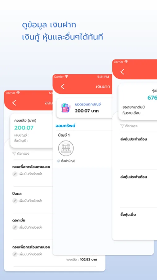 - ดูยอดเงิน รายการเคลื่อนไหวบัญชีเงินฝาก