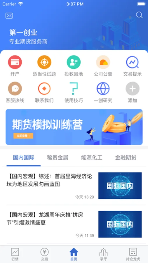 第一创业期货,提供专业期货行情、期货开户、期货交易、客户服务、期货资讯、金融资讯、期货研究、期权、股指期货等移动端综合金融服务,让您感受耳目一新的移动期货交易方式。
