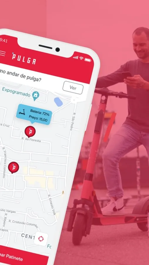 With Pulga you can find, unlock and ride shared electric scooters deployed all over Gramado/RS.