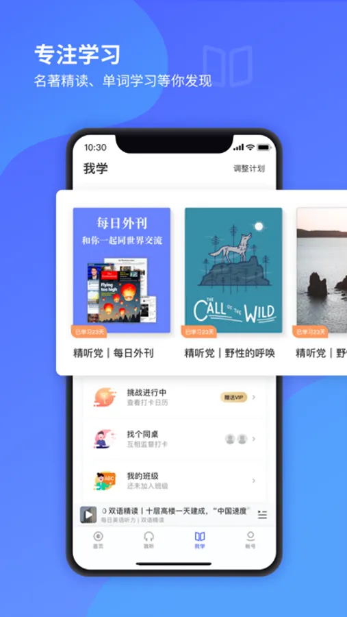 - 精听党:名著原声朗读,精编版讲义讲解,配套习题测试。
