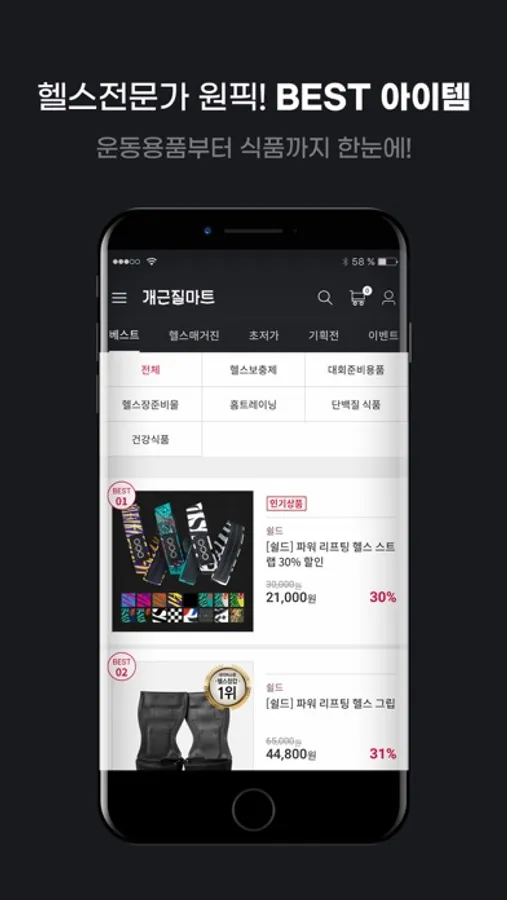 대한민국 N0.1 라이프 & 피트니스 용품의 중심, 개근질마트 입니다.