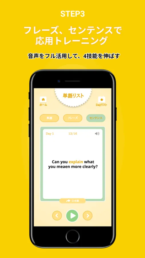 ③書籍に掲載されてる単語、フレーズ、センテンスの確認、音声の再生