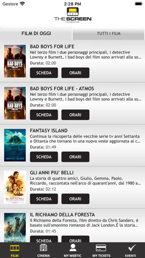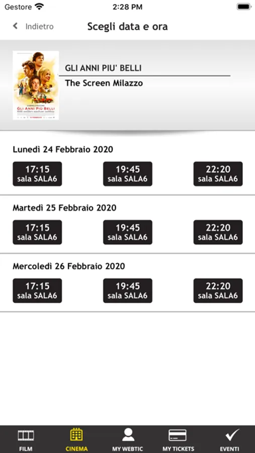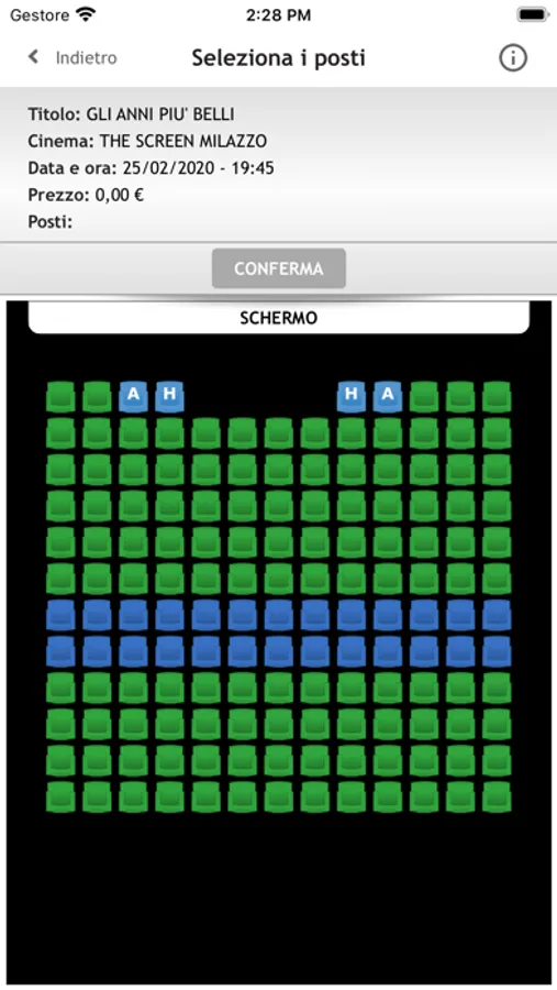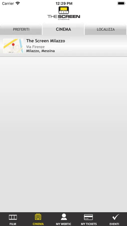 Applicazione di Crea Informatica, per l'acquisto e la prenotazione dei posti nel prestigioso cinema The Screen di Milazzo.