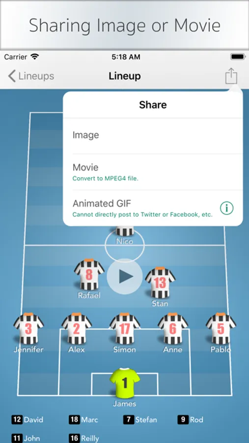 ◉ Display players using uniform image, photo image, 3 seconds video or live photo