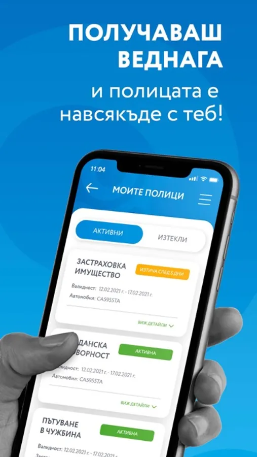 • Получавате застрахователните си полици по имейл и в мобилното приложение.