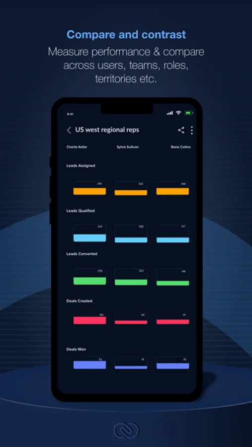Sales teams are no longer tied to their desks, so neither should your CRM. The Zoho CRM Analytics mobile app can help your Sales Managers stay in control by giving them access to sales analytics on the go. Keep track of your KPIs, compare sales performance across teams, and turn your sales objectives into achievable targets.