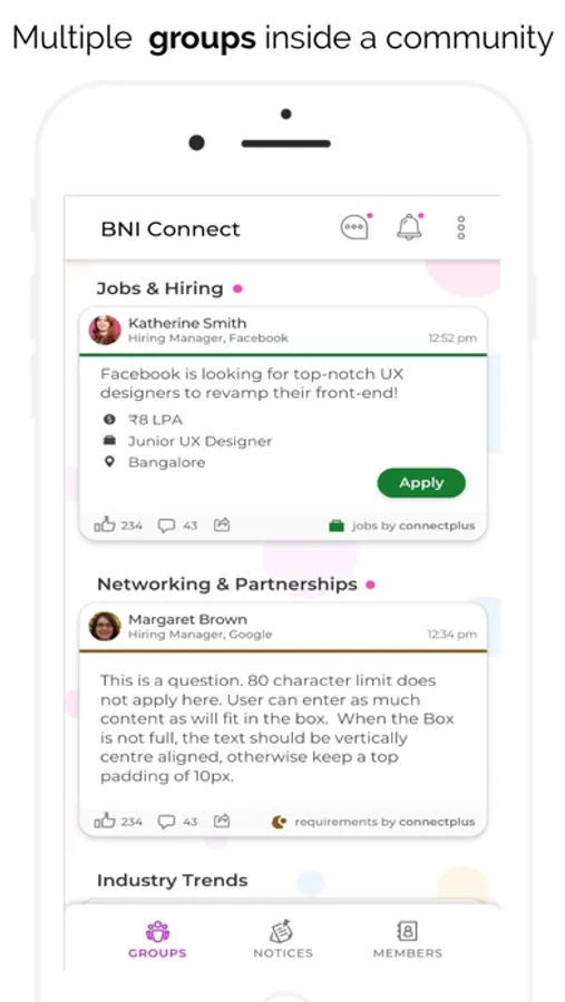 Interest Groups - You can create multiple interest groups inside a community for networking and collaboration among members.