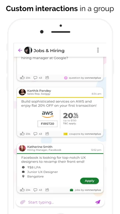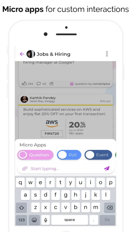 Custom Interactions help you enable a unique experience to your community eg. Conduct a poll, get RSVPs to events, Ask Me Anything.